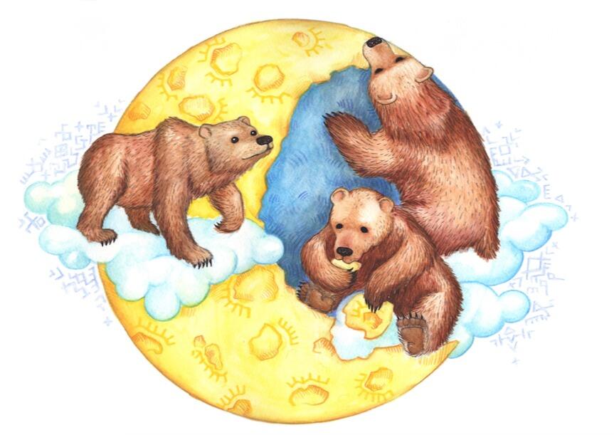 La lune comme un fromage que les ours dévorent vient du proverbe anglo-saxon "the moon is made of green cheese", qui évoque quelqu'un de simplet.