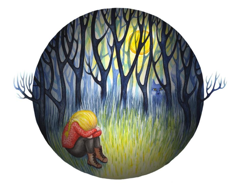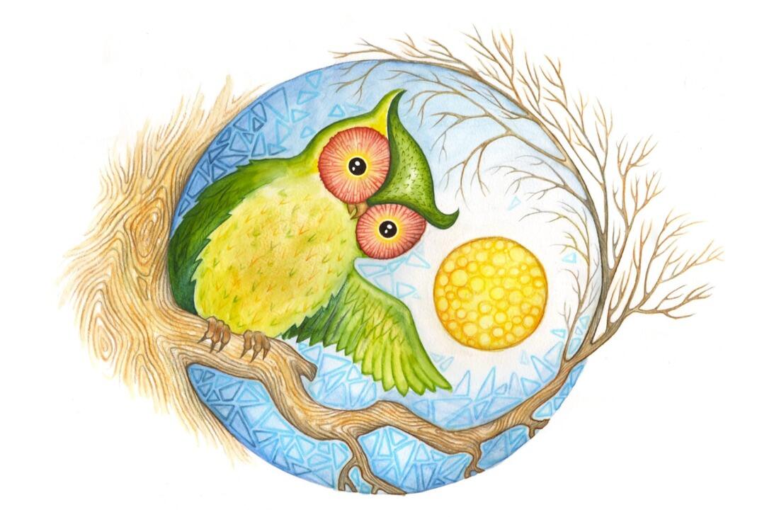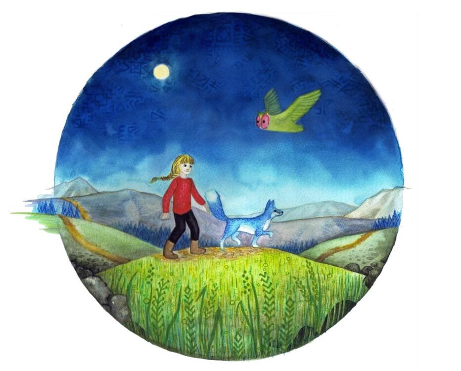 – Tu es courageuse, petite fille. Suis-moi.Et Lou suit le renard argenté qui se fraye un passage entre les arbres. À la sortie du bois, posée sur une branche, la chouette les regarde de ses yeux ronds et jaunes.