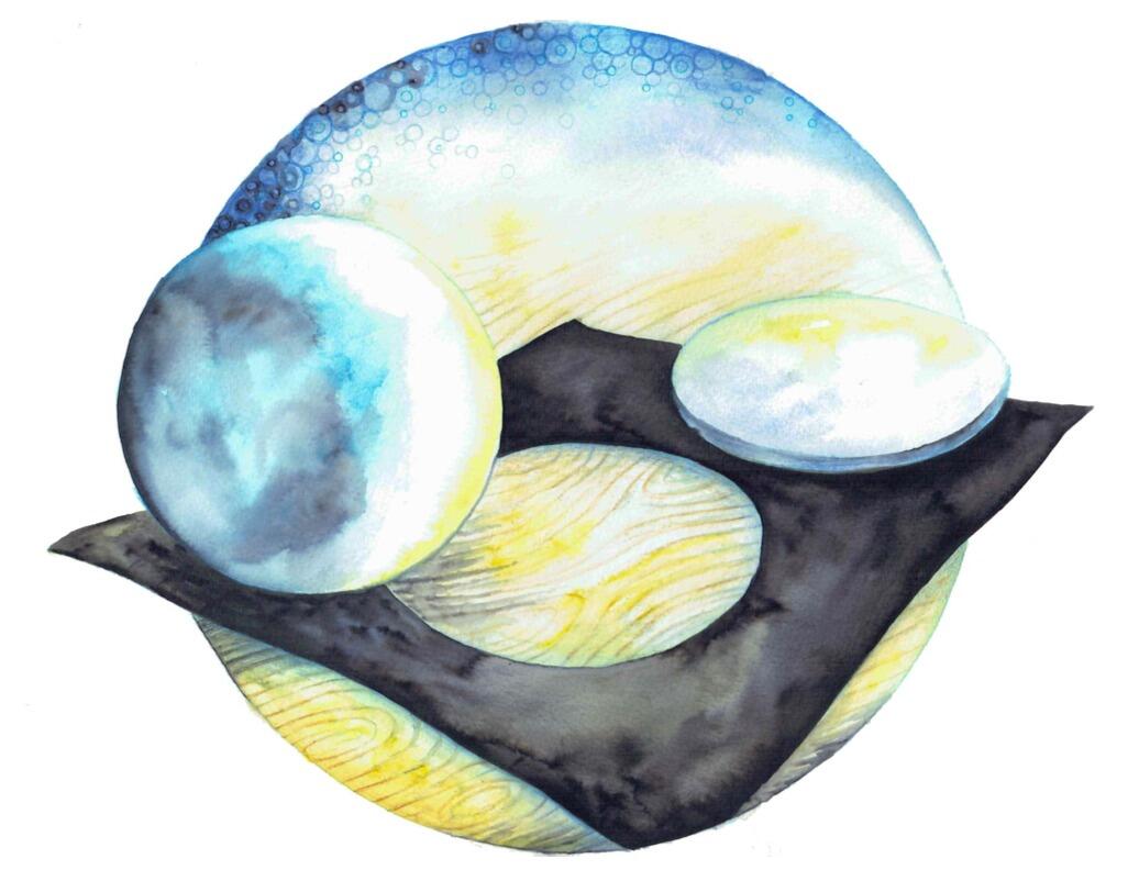 Jusqu'au soir, Lou ne quitte pas la boule, le disque et le carton troué. Elle les regarde de près, de loin, les retourne, les lance, se demande lequel des trois ressemble le plus à une petite lune.